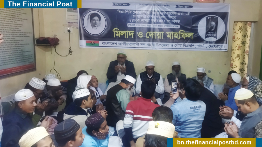 প্রয়াত বিএনপি চেয়ারপার্সন ও সাবেক প্রধানমন্ত্রী বেগম খালেদা জিয়ার বিদেহী আত্মার মাগফিরাত কামনায় মেহেরপুরের গাংনীতে দোয়া মাহফিল অনুষ্ঠিত হয়েছে।