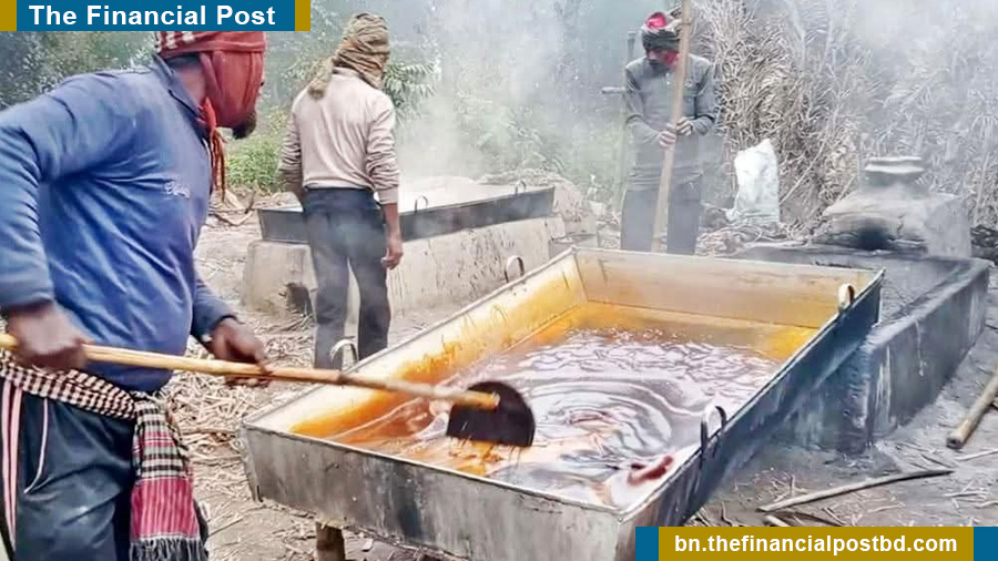 জয়পুরহাট সদরের কুঠিবাড়ী ব্রিজ এলাকার গাছি আব্দুল হামিদ বলেন, ‘রাত ৩টার দিকে আমরা গাছে উঠে রস সংগ্রহ করি। এরপর ভোরের দিকে সেই রস নিয়ে এসে বড় তাওয়ায় ঢালা হয়। তারপর চার ঘণ্টার মতো জ্বাল দিতে হয়। একপর্যায়ে ঘন হলে সেই রস নামিয়ে গুড় তৈরি করা হয়। এরপর এই গুড় বাজারে বিক্রি করি। অনেকে এখান থেকে কিনে নিয়ে যায়।’