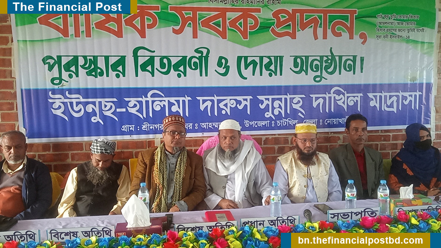 নোয়াখালী জেলার চাটখিল উপজেলার নোয়াখলা ইউনিয়নের শ্রীনগর অবস্থিত বৃহস্পতিবার (১৫ জানুয়ারি) সকাল ১১ টায় অত্র মাদরাসার সহকারী শিক্ষক মাওলানা আবদুল আউয়াল এর সঞ্চালনায় সুপার মাওলানা আবদুস সালাম এর সভাপতিত্বে প্রধান অতিথি হিসেবে উপস্থিত ছিলেন মল্লিকা দীঘির পাড় ফাজিল (ডিগ্রি) মাদরাসা অধ্যক্ষ মাওলানা আবদুল মান্নান।