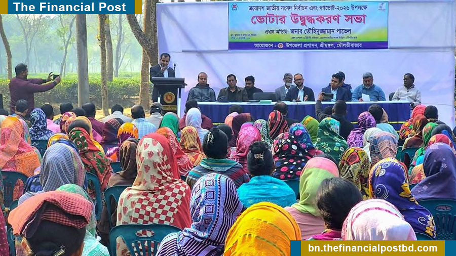আসন্ন ত্রয়োদশ জাতীয় সংসদ নির্বাচন ও গণভোট-২০২৬ উপলক্ষে মৌলভীবাজারের শ্রীমঙ্গল উপজেলার ফুলছড়া চা বাগানে নারী-পুরুষ চা শ্রমিকদের নিয়ে এক ভোটার উদ্বুদ্ধকরণ সভা অনুষ্ঠিত হয়েছে।