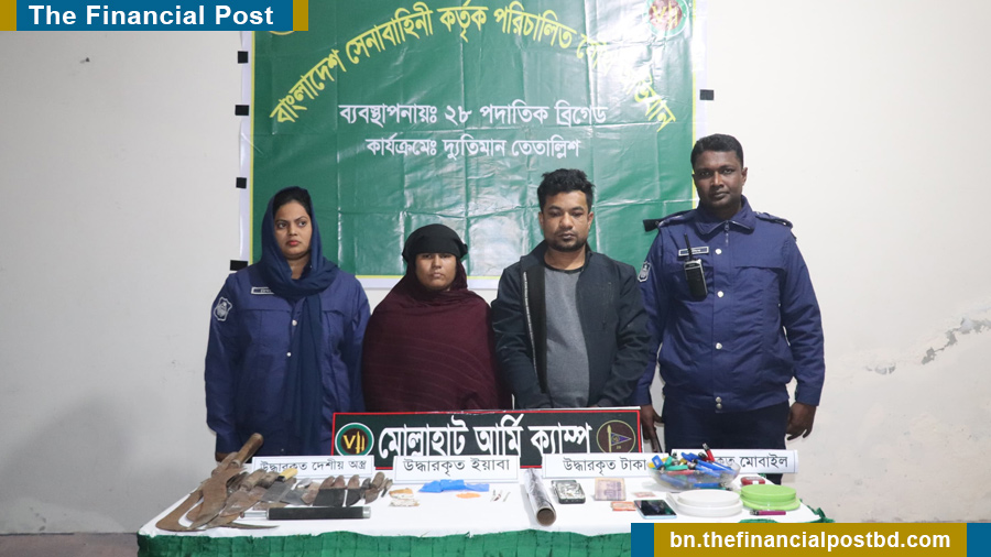 বাগেরহাটের মোল্লাহাট উপজেলায় আর্মির নেতৃত্বাধীন যৌথবাহিনীর অভিযানে তানিয়া আক্তার (৩৭) ও মহিবুল্লাহ (৩০) নামে এক নারী ও এক পুরুষকে মাদকদ্রব্য ও দেশীয় অস্ত্রসহ আটক করা হয়েছে।