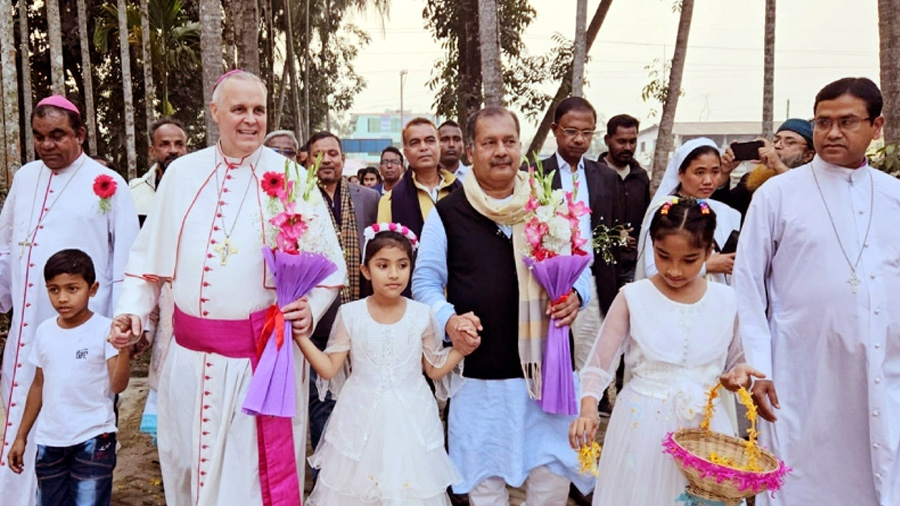 বরিশালের গৌরনদী উপজেলার একটি ক্যাথলিক চার্চ পরিদর্শন করেছেন ইতালির ভ্যাটিকান সিটি-এর রাষ্ট্রদূত ও বিশপ কেভিন র্যান্ডাল।