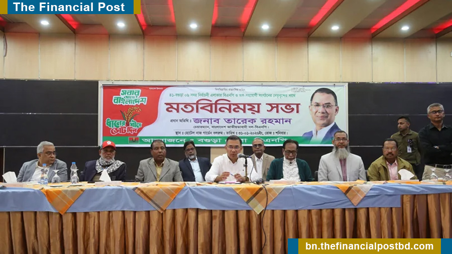 বিএনপির চেয়ারম্যান তারেক রহমান তার নির্বাচনী এলাকা বগুড়া-৬ সদর আসনের বিএনপি ও অঙ্গ-সহযোগী সংগঠনের নেতাকর্মীদের সঙ্গে মতবিনিময় করেন। তিনি নেতাকর্মীদের উদ্দেশে বলেন, আপনারা বলছেন— বিএনপির ঘাঁটি বগুড়া, সামনে ভোটের মাধ্যমে দেখিয়ে দেন বগুড়া সত্যিকারে বিএনপির ঘাঁটি। এই ঘাঁটি রক্ষার দায়িত্ব আপনাদের।
